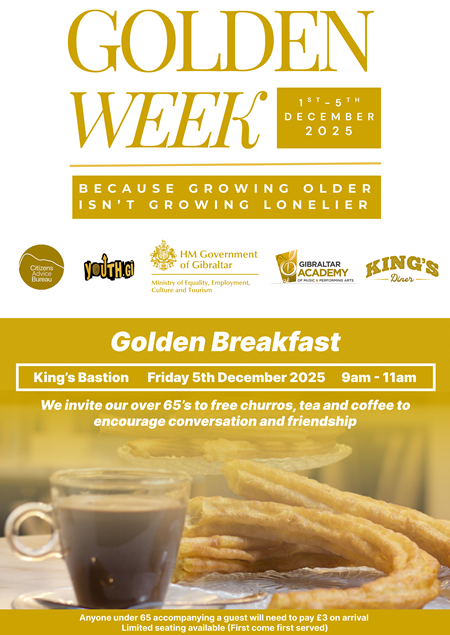 The Ministry of Equality, Employment, Culture and Tourism (MEECT) is proud to announce Golden Week 2025, a week-long initiative celebrating Gibraltar’s older generation under the theme ‘Because getting older doesn’t mean getting lonelier’.