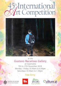 Gibraltar Cultural Services, on behalf of the Ministry of Culture, is inviting entries for the 45th Gibraltar International Art Competition. Entries will be exhibited at the Gustavo Bacarisas Galleries from the 7th to the 17th November 2018.