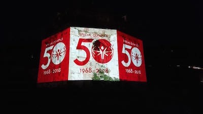 To commemorate the 50th Anniversary of the Special Olympics on Friday 20th July, the Moorish Castle was illuminated with the Special Olympics logo.
