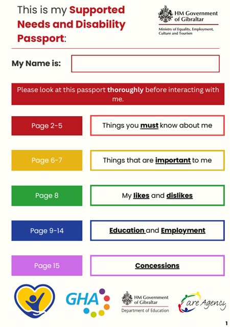 The Ministry of Equality’s Supported Needs and Disability Office have collaborated with GHA, the Department of Employment, The Care Agency and the Department of Education to design a Passport that provides as much information as possible so that professionals liaising with the person have the information they need to interact with them more effectively.