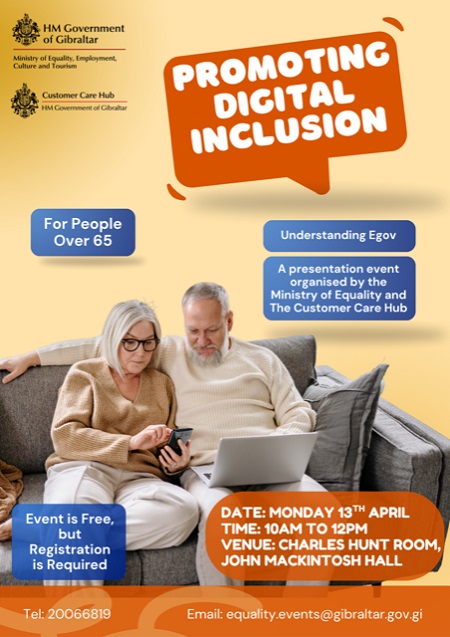 The event will take place on Monday 13th April at 10am at the Charles Hunt Room, John Mackintosh Hall and is open to Gibraltar residents aged 65 and over. The event is free but registration for the event is essential, and anyone interested in attending should contact Tel 200 66819 or email: This email address is being protected from spambots. You need JavaScript enabled to view it.