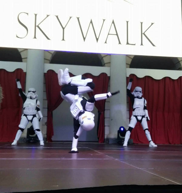 Supported by Boogie Storm, the dancing Stormtroopers, Mark made a public appearance in John Mackintosh Square earlier today.