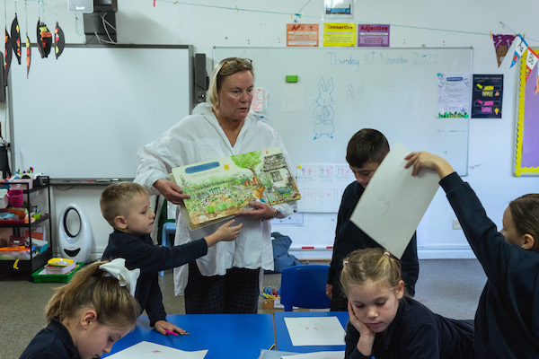 Former teacher and storyteller Corinne Massetti entertained with her original story ‘They Clapped’ a quaint tale to capture their imagination. Showing them some examples of her drawings on recyclable materials, encouraging them to write and illustrate their own stories.