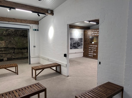 Adjoining the gallery, a new cinema space has been developed, screening rare original footage from the Imperial War Museum. This is complemented by new films produced with the Gibraltar Tourist Board, documenting the efforts to restore artefacts, preserve the site, and showcase unique features such as its original wartime graffiti.