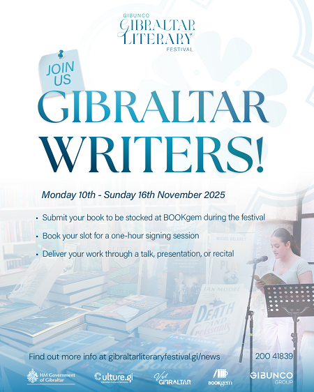 Gibraltar Cultural Services, on behalf of the Ministry of Culture, in collaboration with BOOKgem Bookshop, is extending an invitation to local authors to take part in a series of activities during the week of the Gibunco Gibraltar Literary Festival 2025.