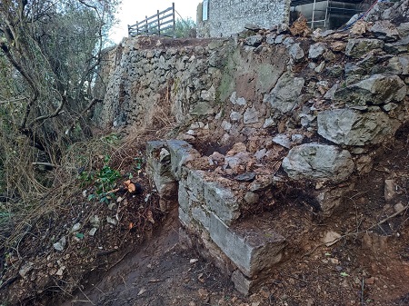 During the current conservation phase, cleaning of the southern sector revealed the tower’s remaining foundations, hidden beneath decades of accumulated debris and vegetation. Of particular importance was the identification of a machicolation, a defensive feature built directly into the base of the tower. This architectural element, unique in Gibraltar, consisted of a mortarlined shaft projecting from the wall, enabling defenders to drop grenades or other projectiles onto enemy forces attempting to scale the cliffs below. The machicolation extended outward through a smooth, lined channel, designed to ensure precision when releasing munitions down the slope.