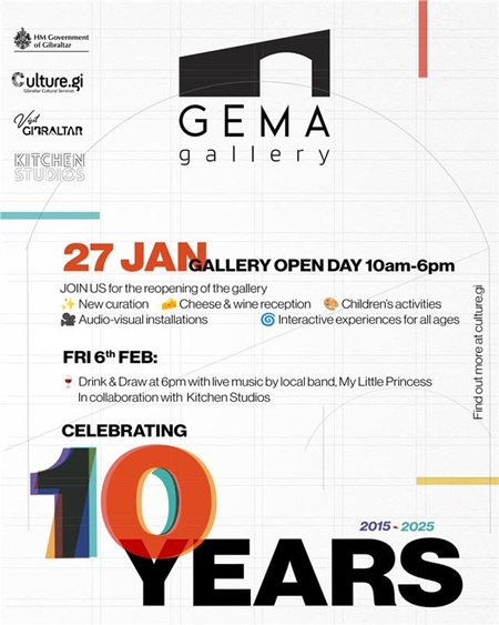 Gibraltar Cultural Services (GCS) on behalf of the Ministry for Culture is proud to announce the 10th Anniversary of Gibraltar Exhibitions of Modern Art (GEMA) Gallery.