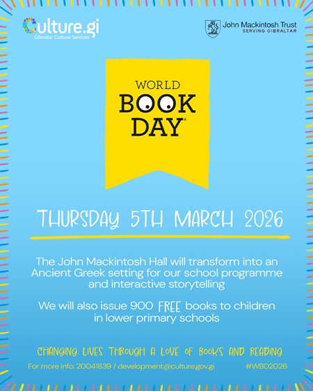 Gibraltar Cultural Services (GCS), on behalf of the Ministry for Culture, is once again looking ahead to World Book Day events, which is kindly being sponsored by the John Mackintosh Hall Trust.